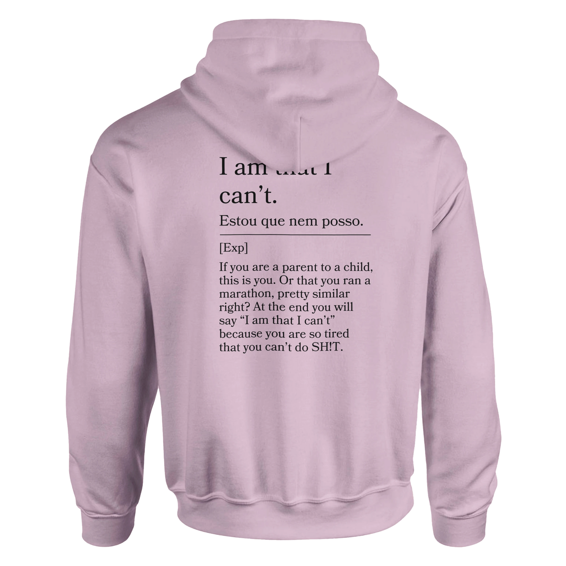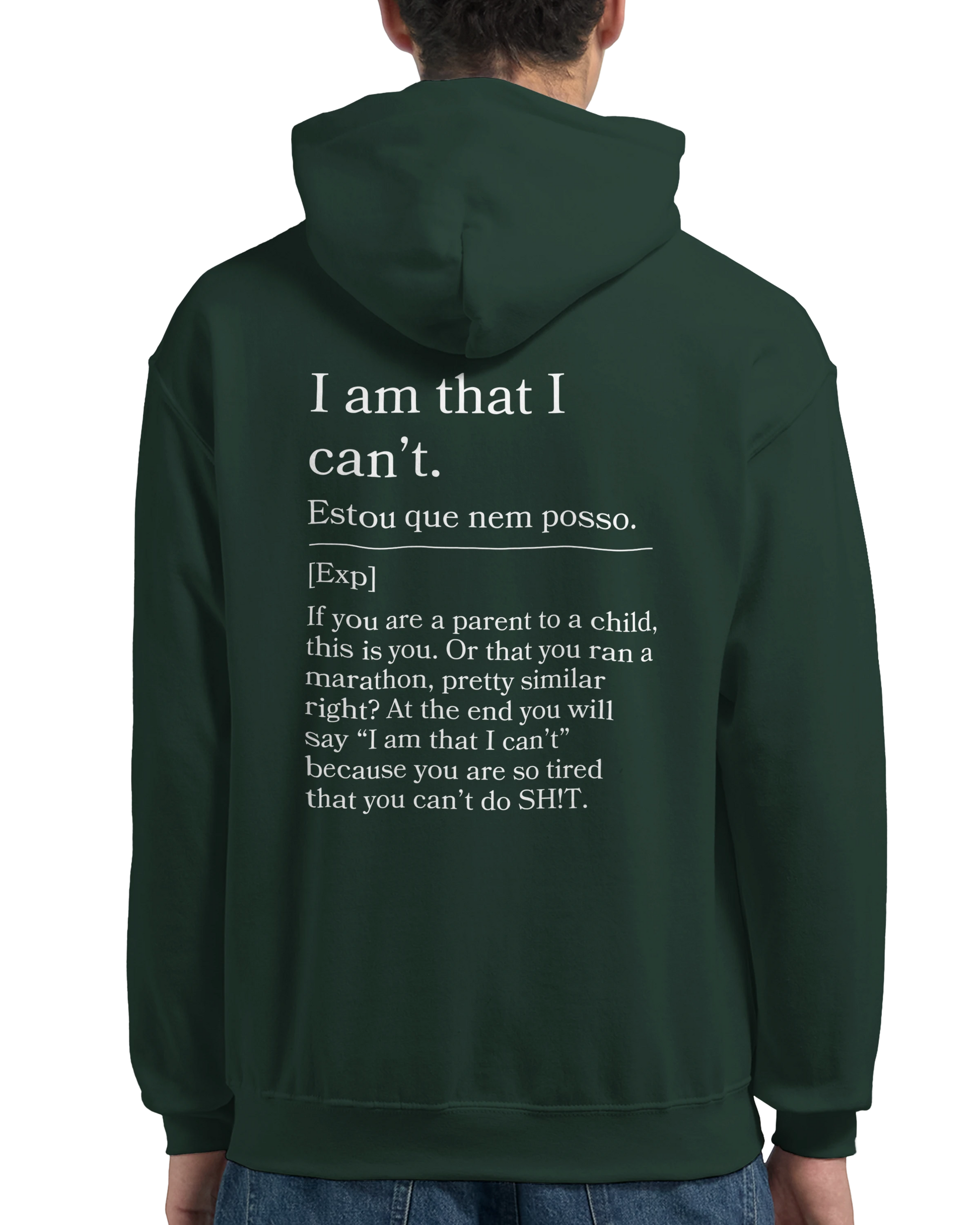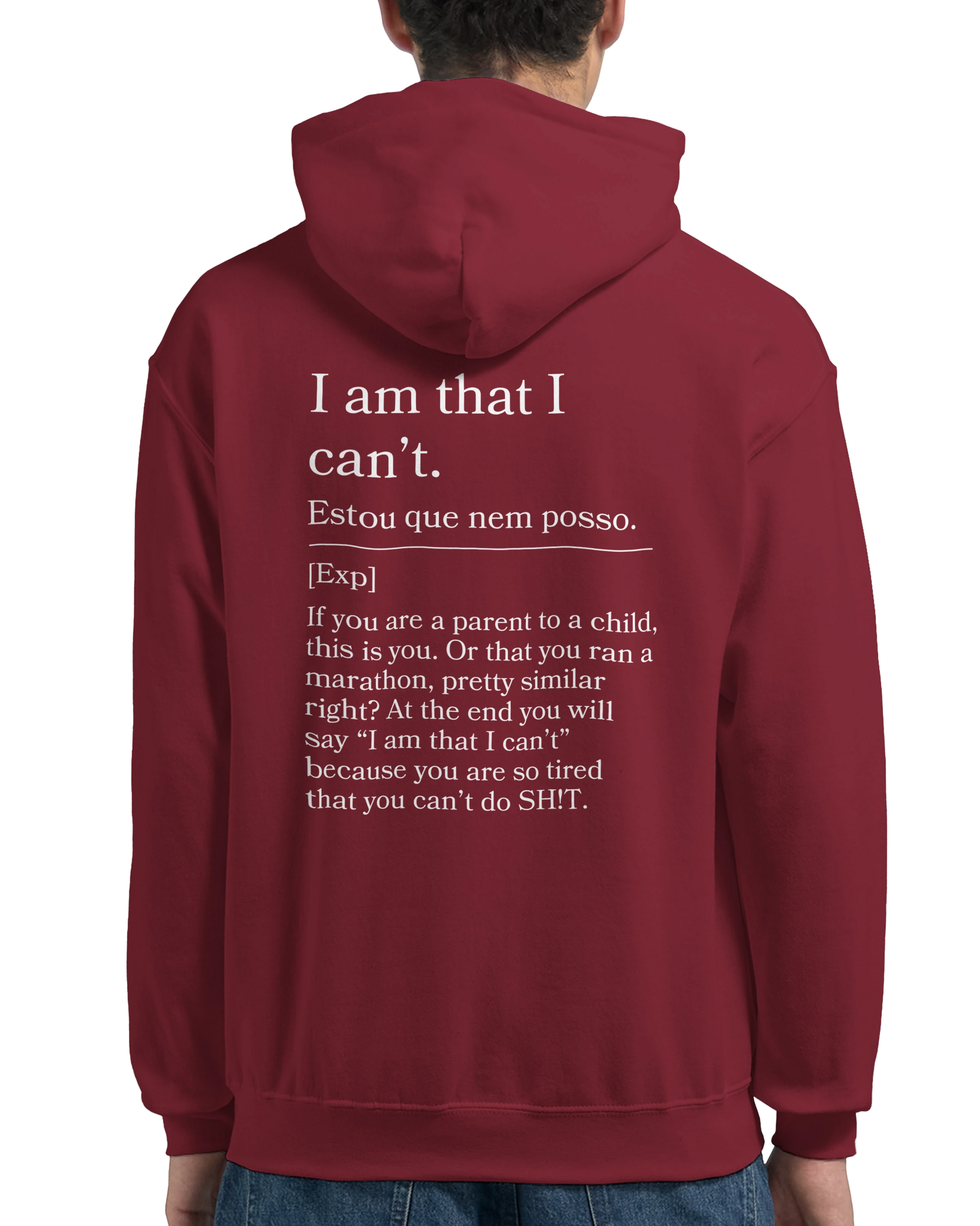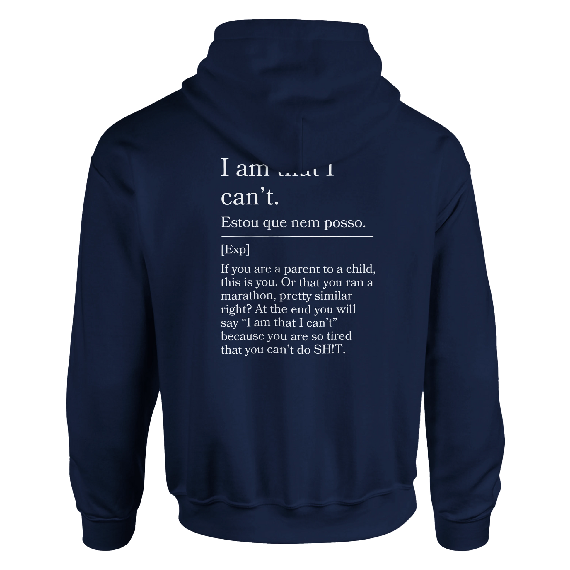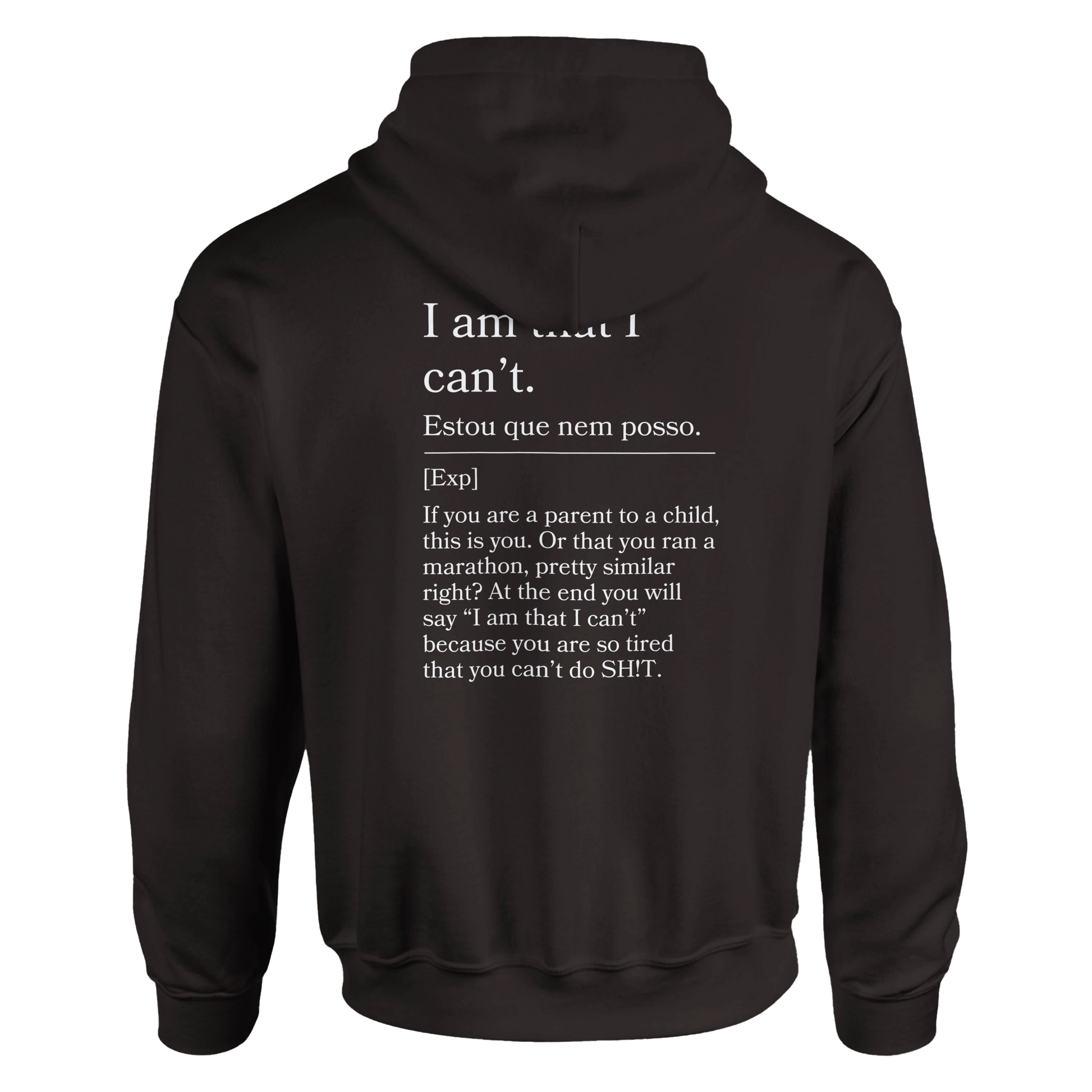 Dead tired? This hoodie reads “Estou que nem posso” with back-print: “So exhausted I can’t even.” Whether you’ve run a marathon or chased toddlers, this tee is your battlecry—plus, naps are allowed.