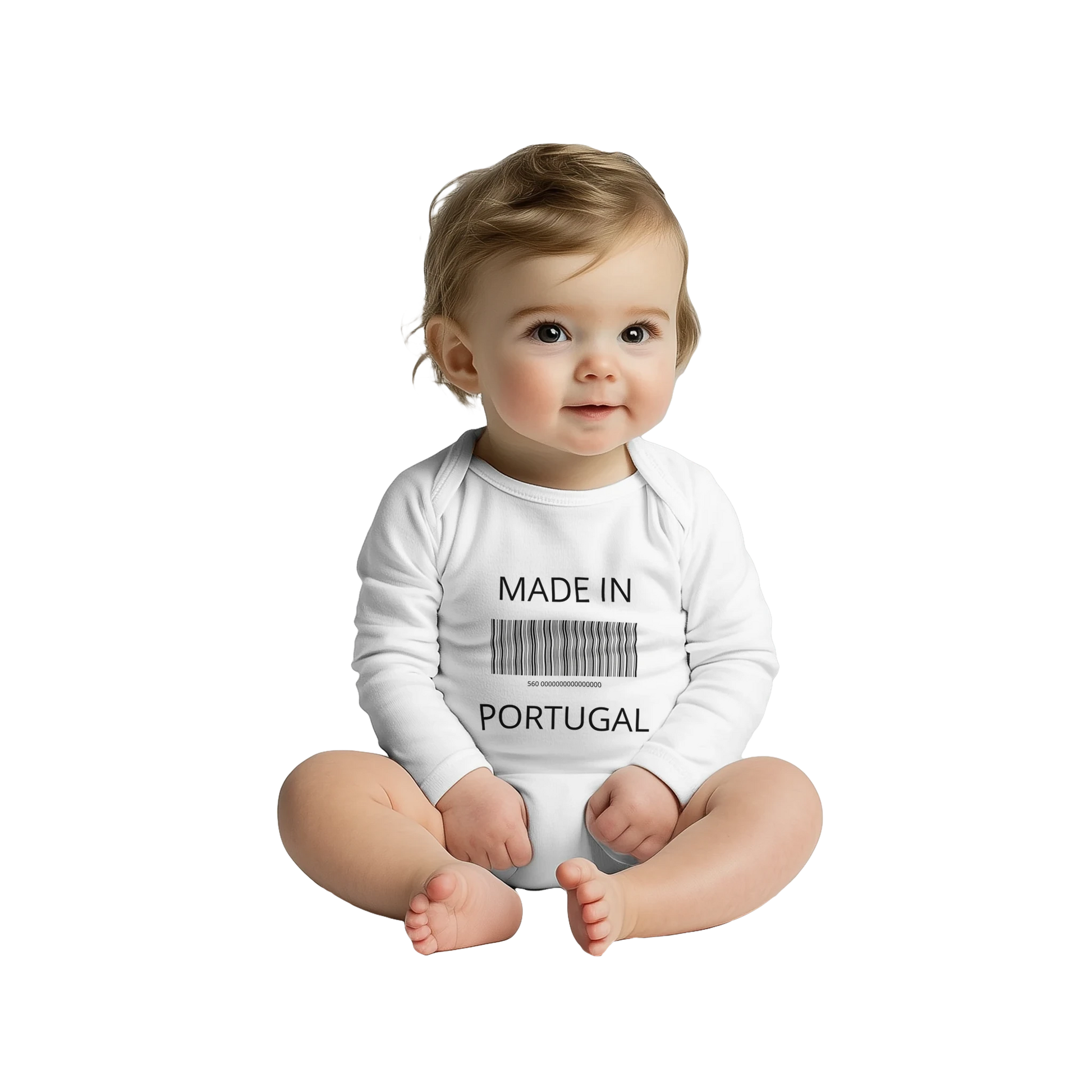 Because babies don’t come with instruction manuals... This bodysuit features a scannable sense of humor and proudly declares what every grandparent already knows: this masterpiece was MADE IN PORTUGAL.