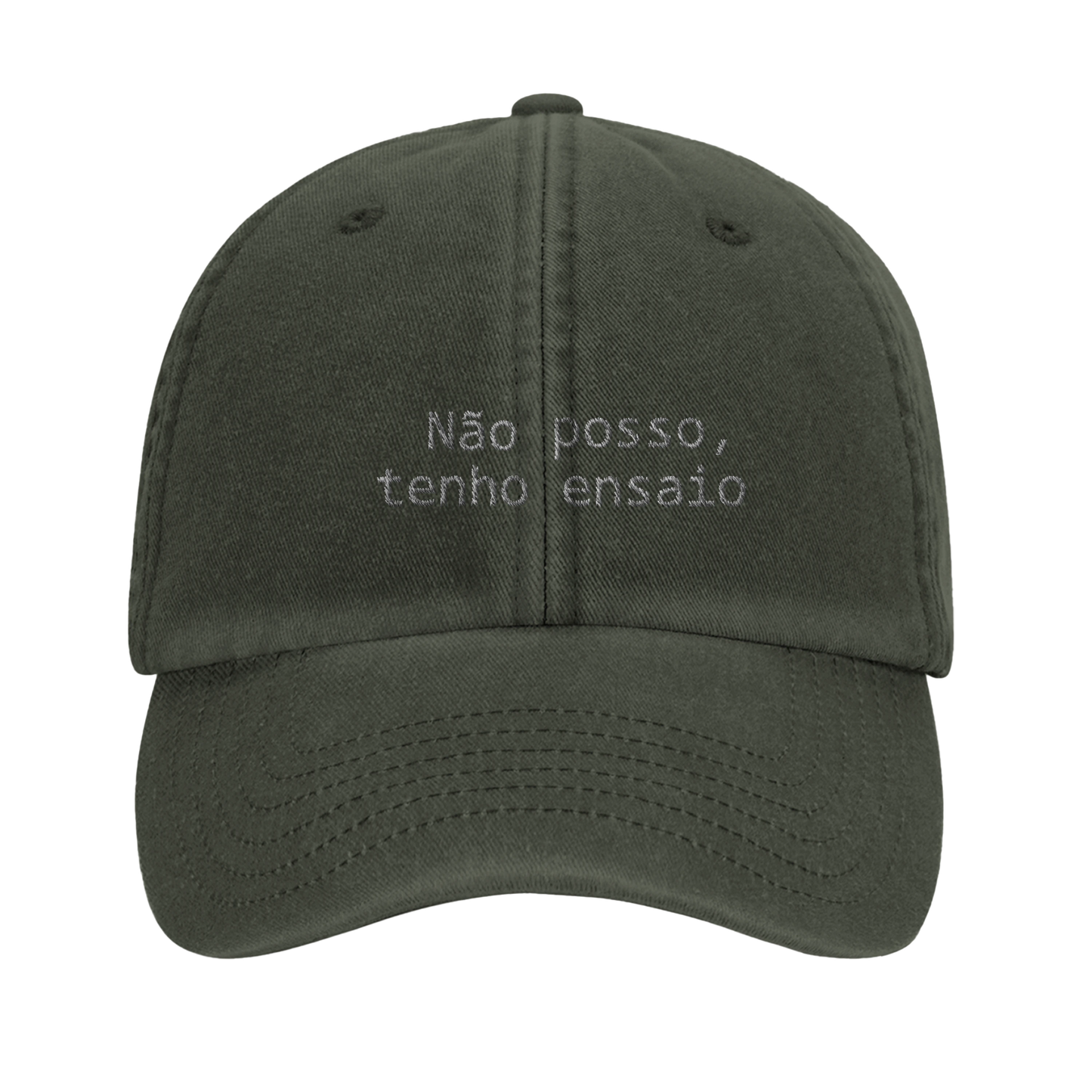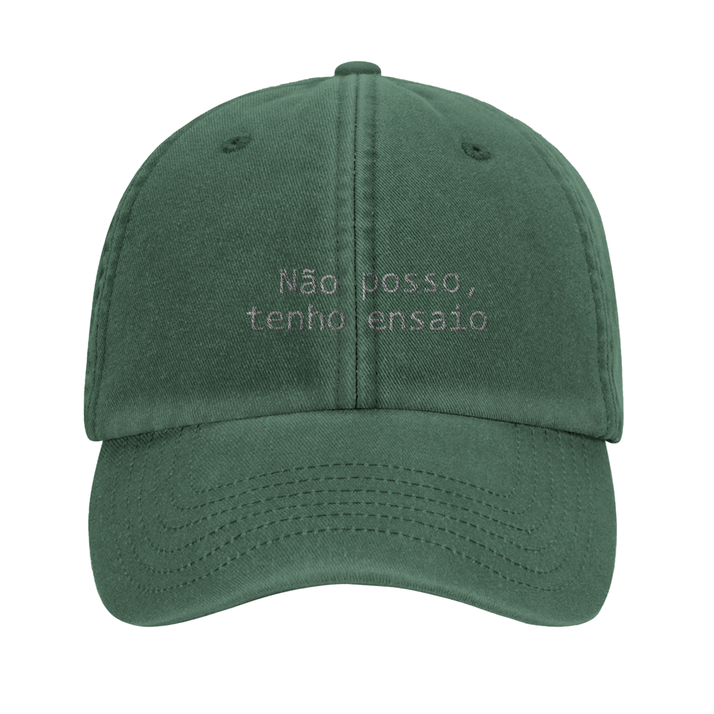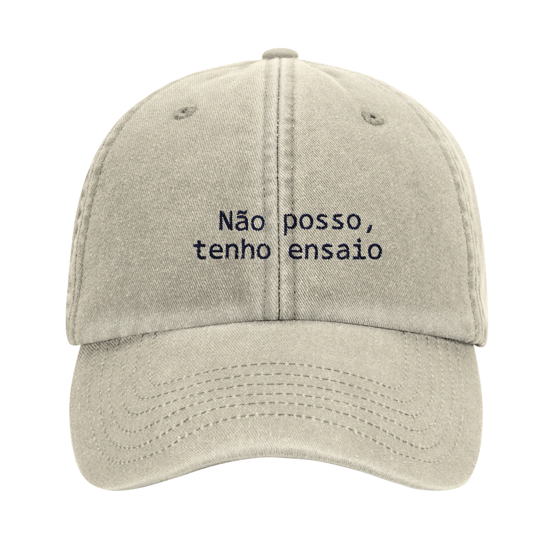 Add a touch of personality to your everyday look with the "Não posso, tenho ensaio" cap. Embroidered with the iconic phrase that every dedicated performer knows too well, this cap blends humor with style in a subtle, refined way.
