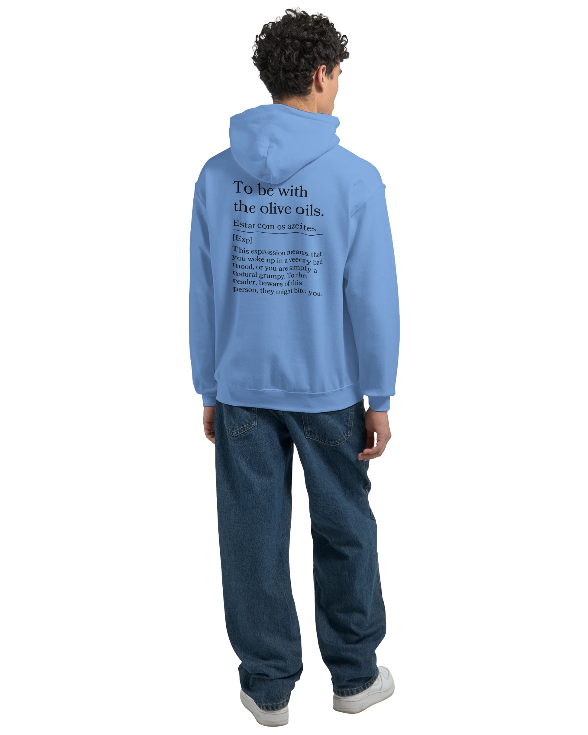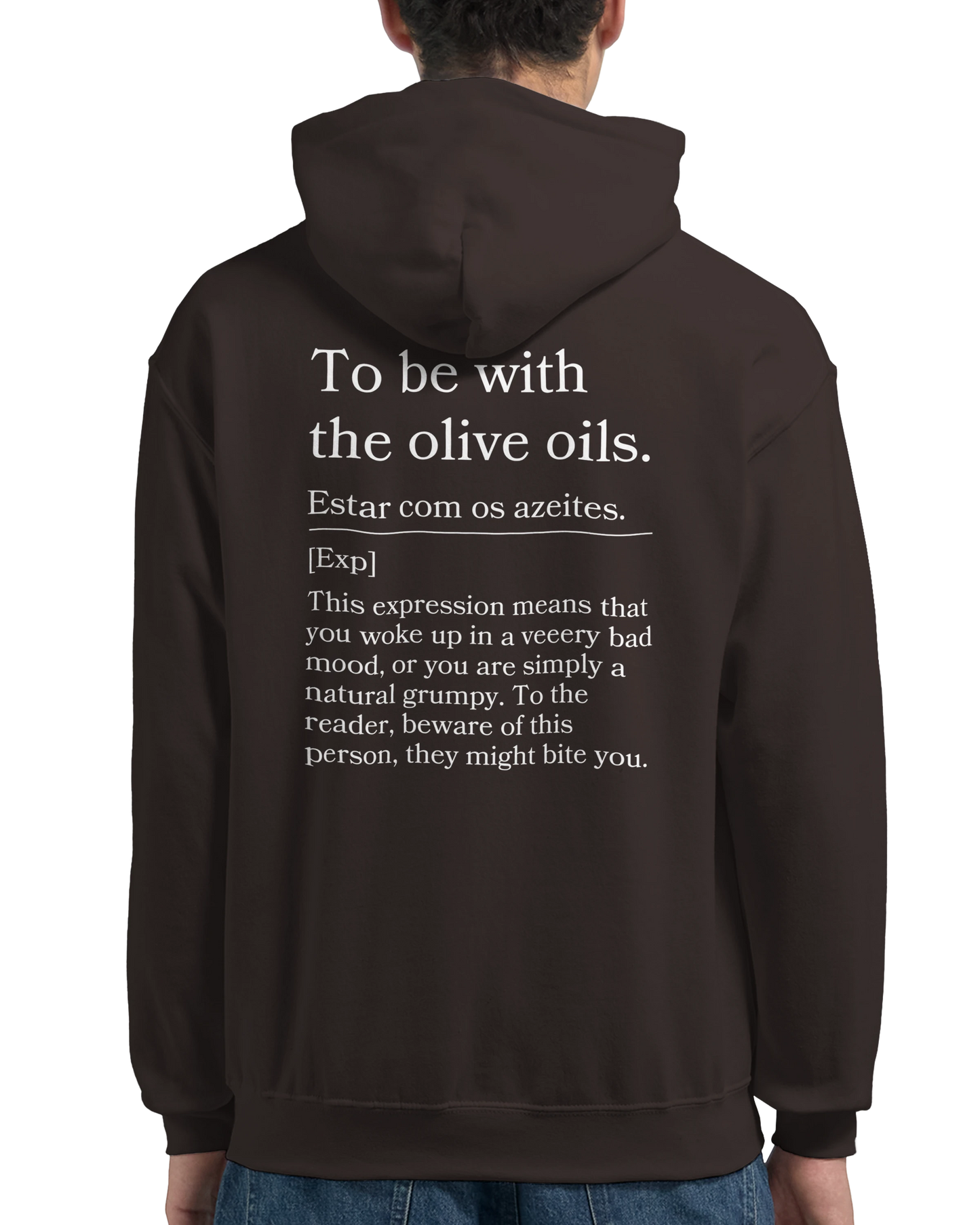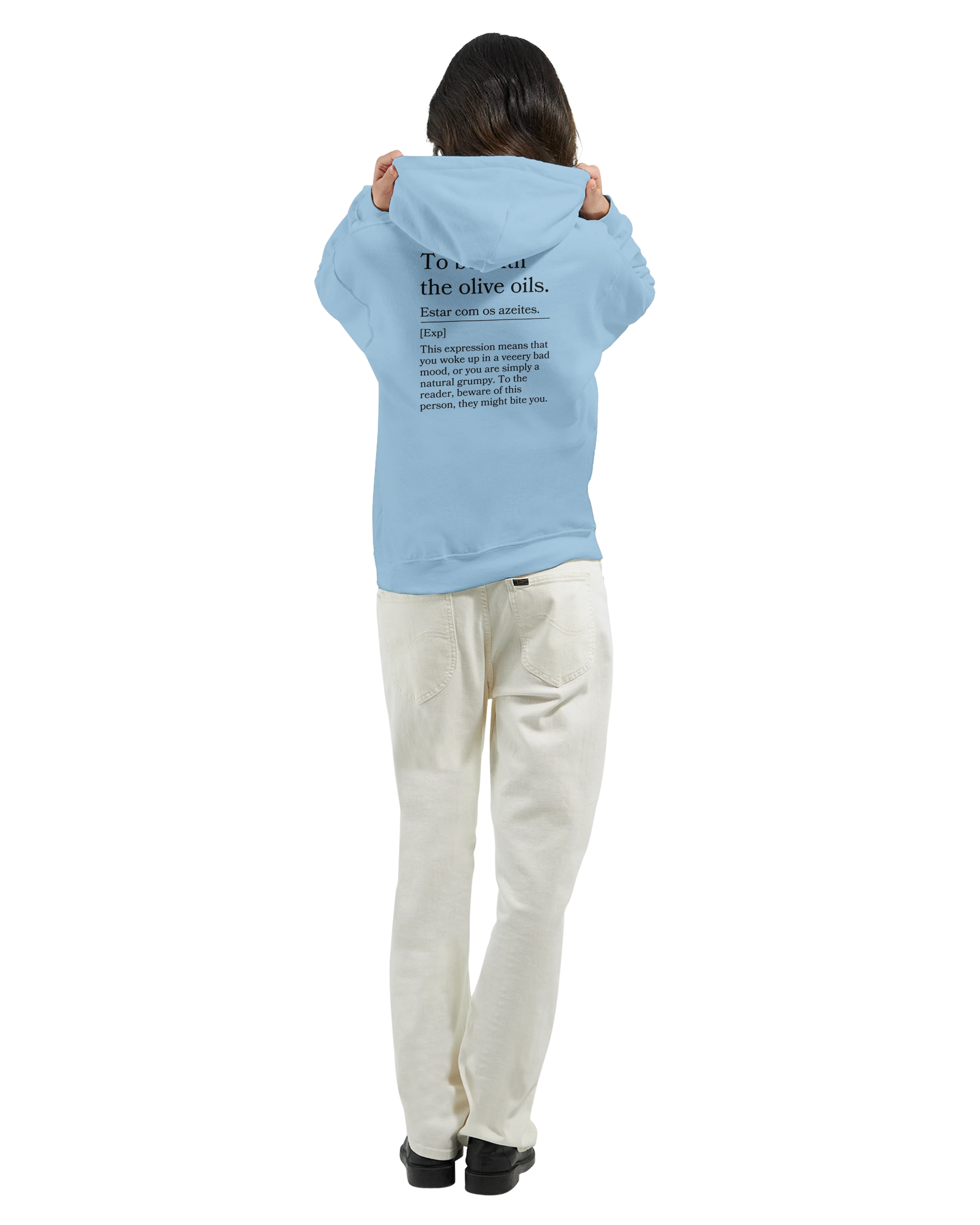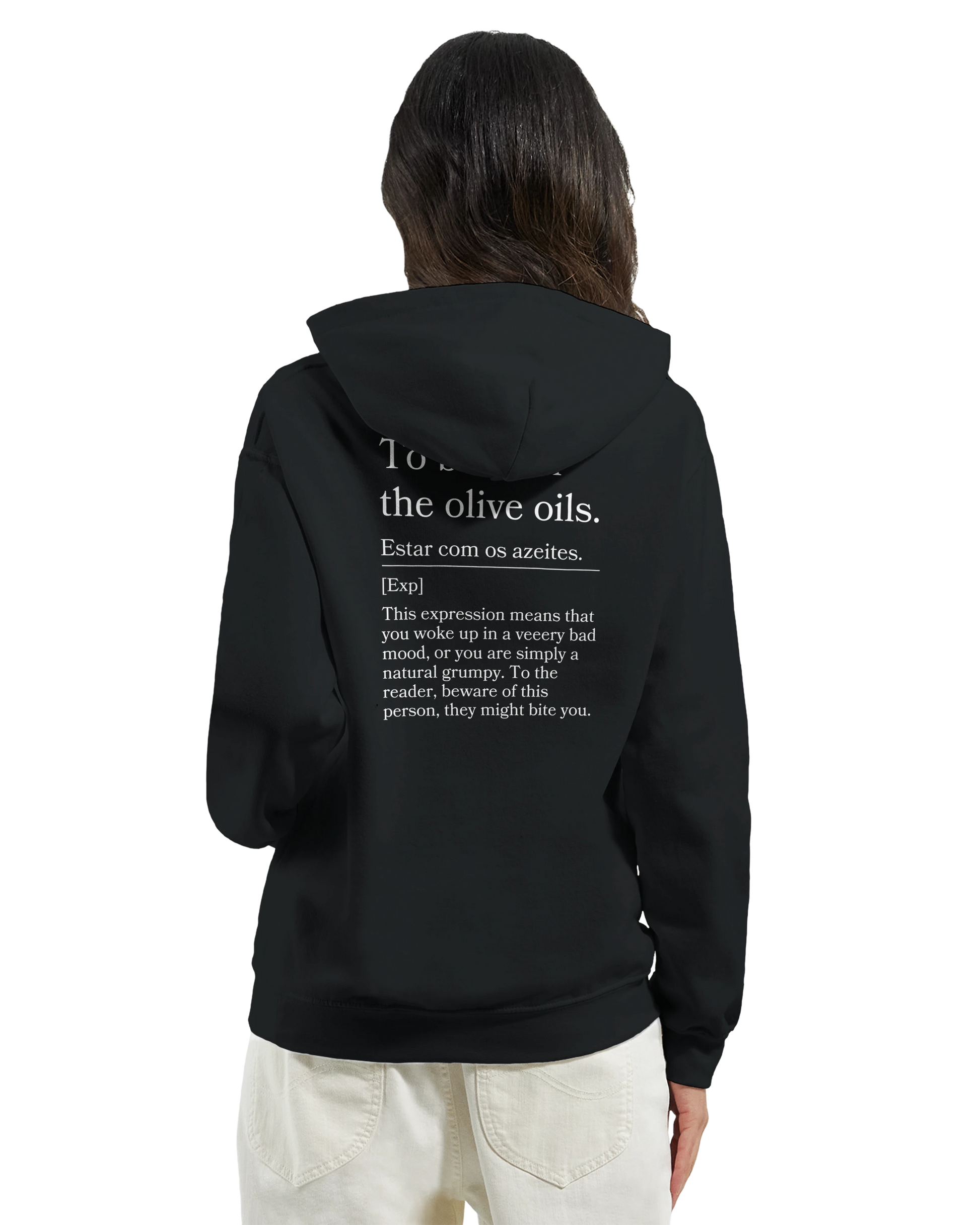 Feeling grumpy? This hoodie says it loud and proud: “Estar com os azeites.” Because waking up on the wrong side of the bed shouldn’t have to be quiet. With a cheeky dictionary-style back print, it warns everyone: avoid me until I’ve had coffee.