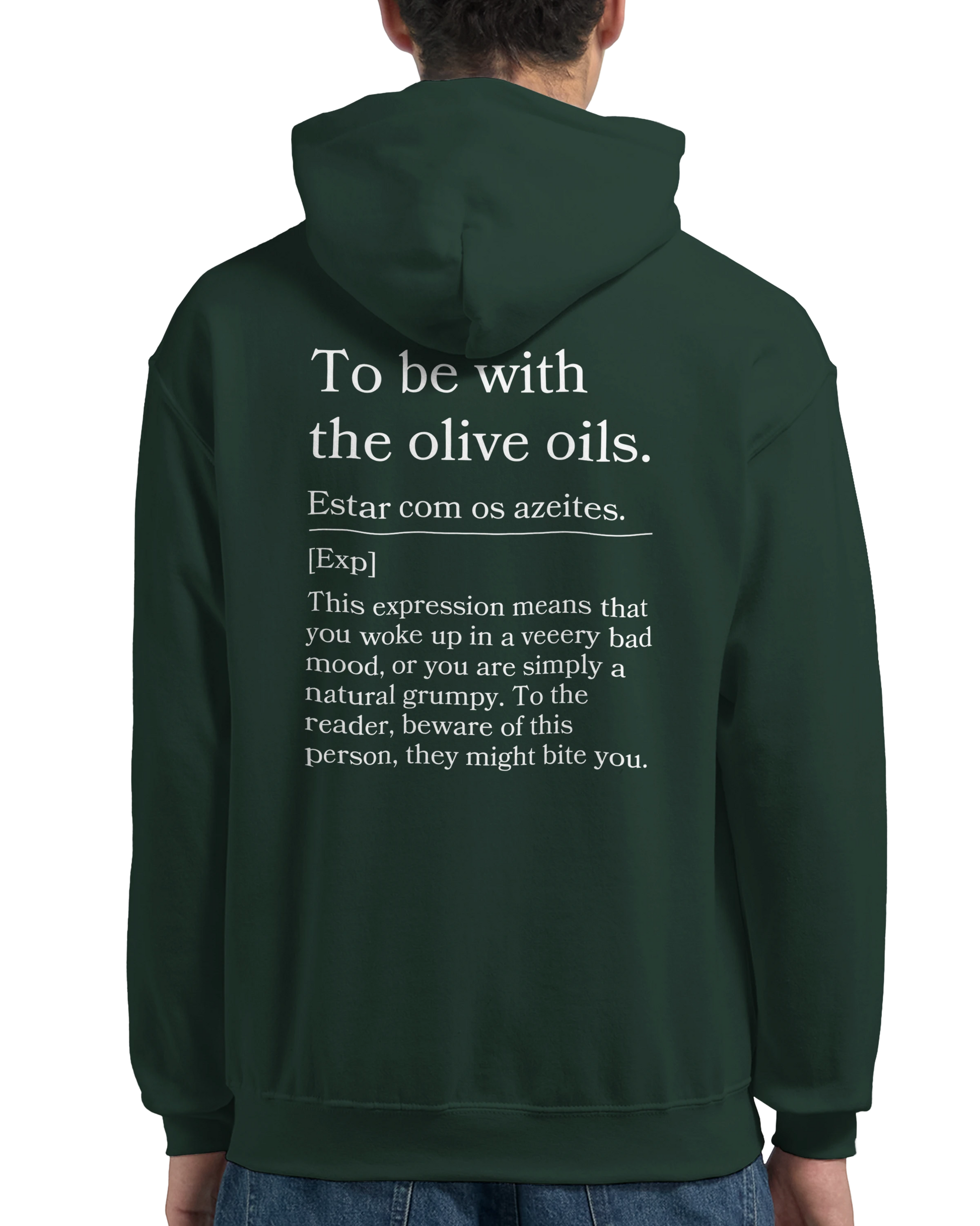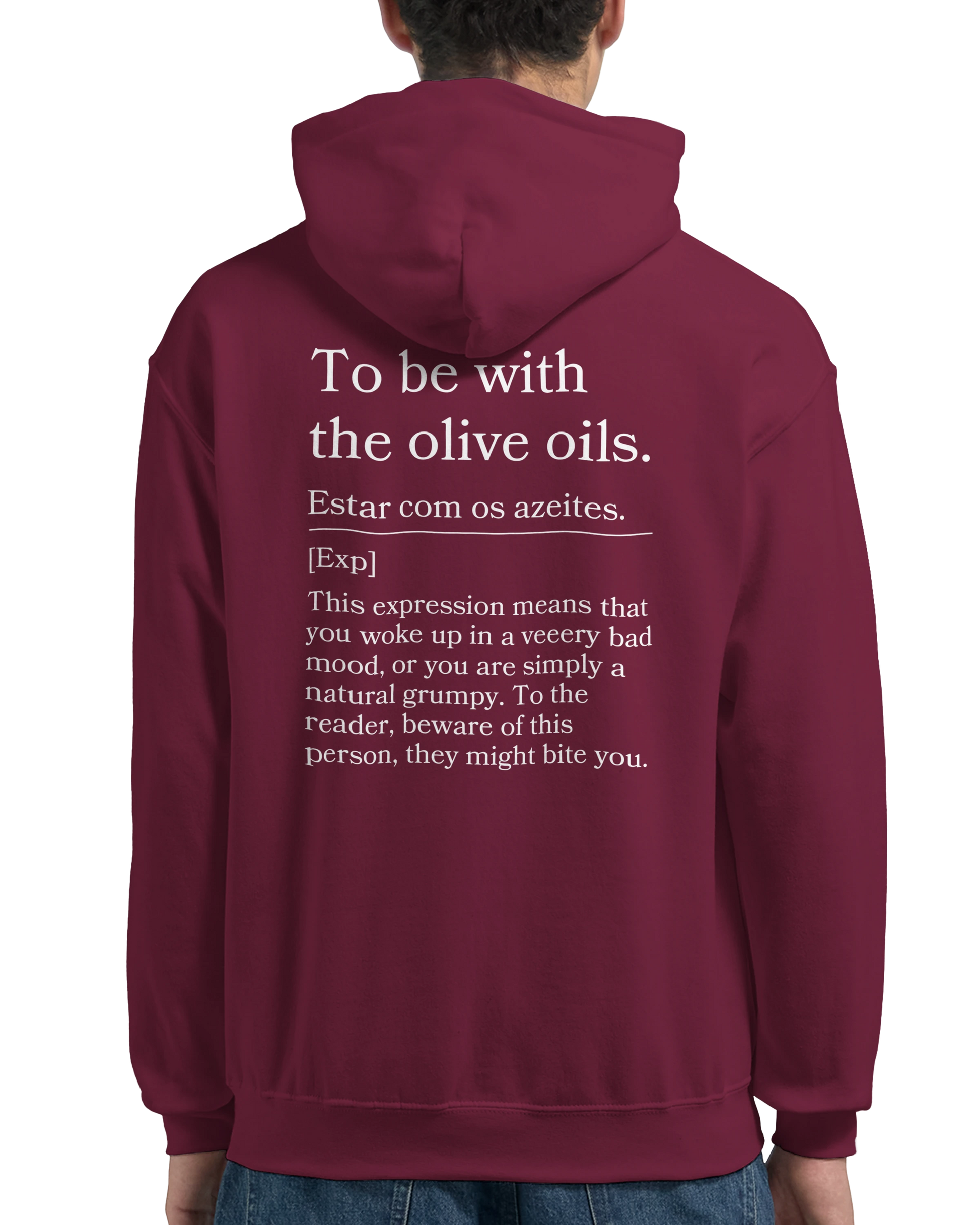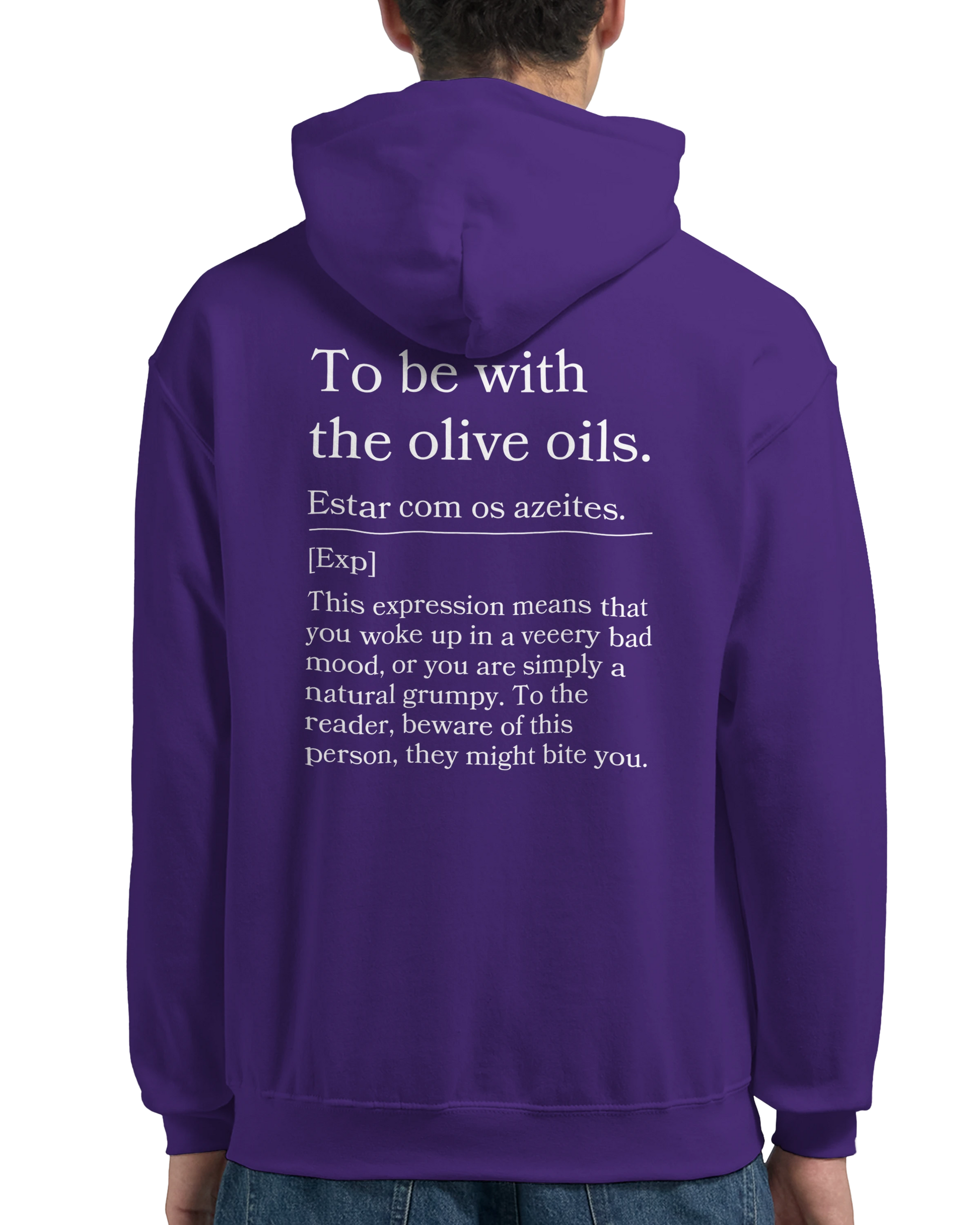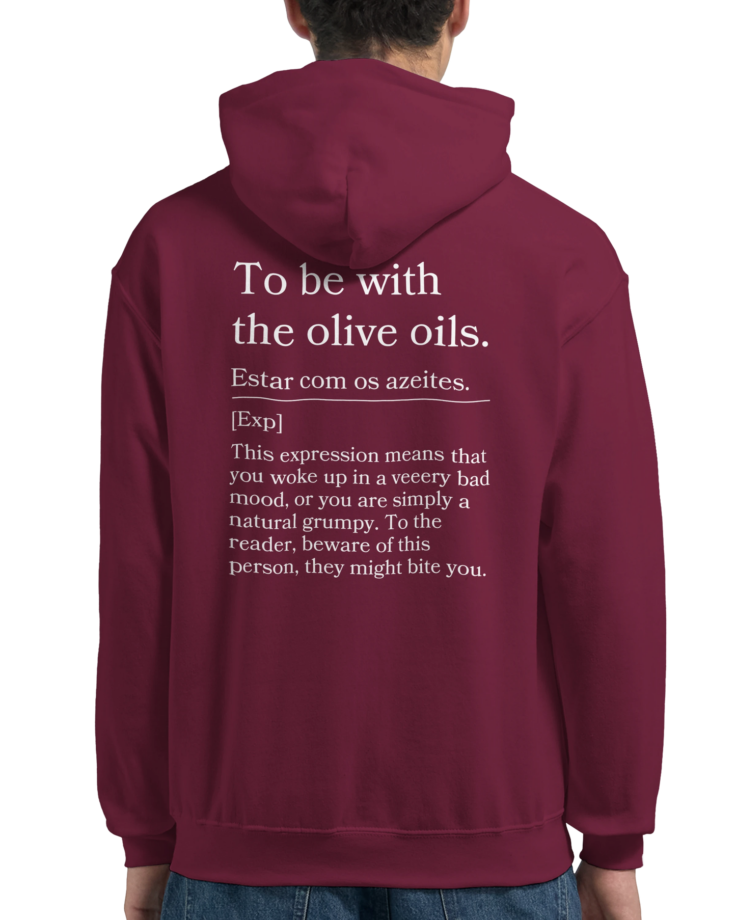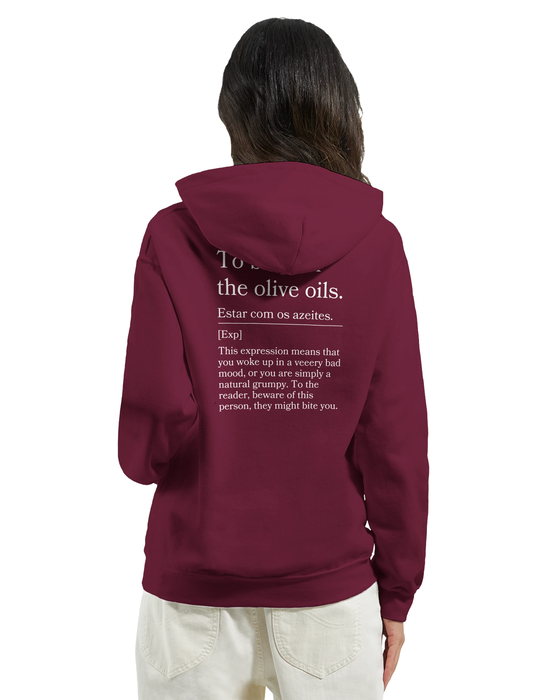 Feeling grumpy? This hoodie says it loud and proud: “Estar com os azeites.” Because waking up on the wrong side of the bed shouldn’t have to be quiet. With a cheeky dictionary-style back print, it warns everyone: avoid me until I’ve had coffee.