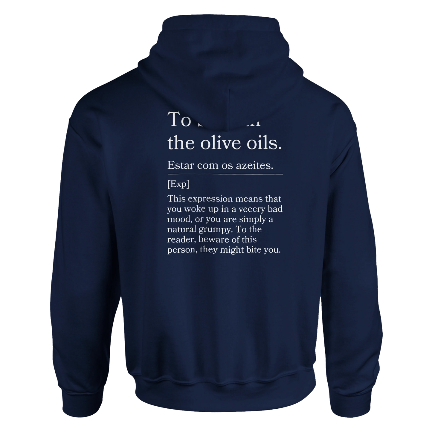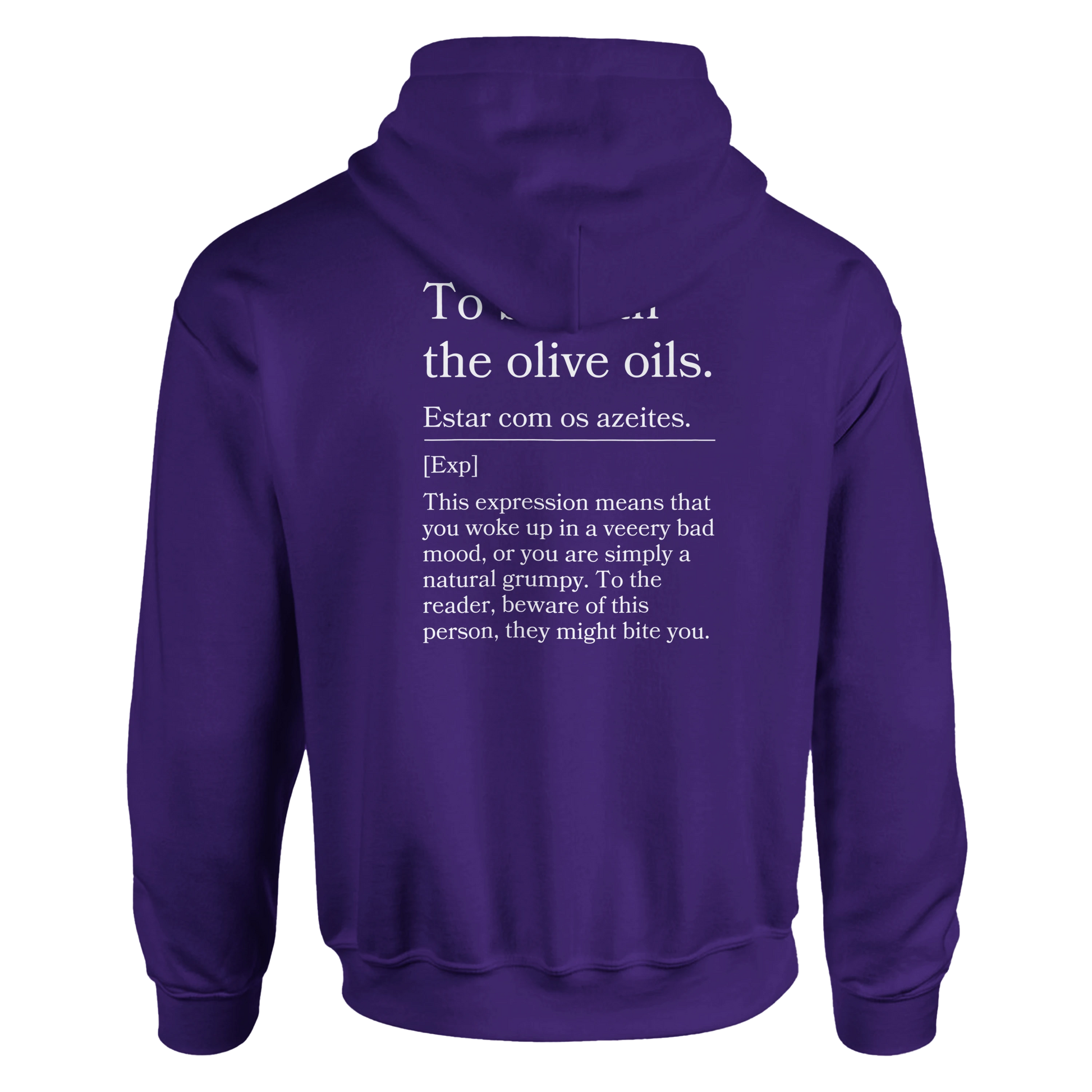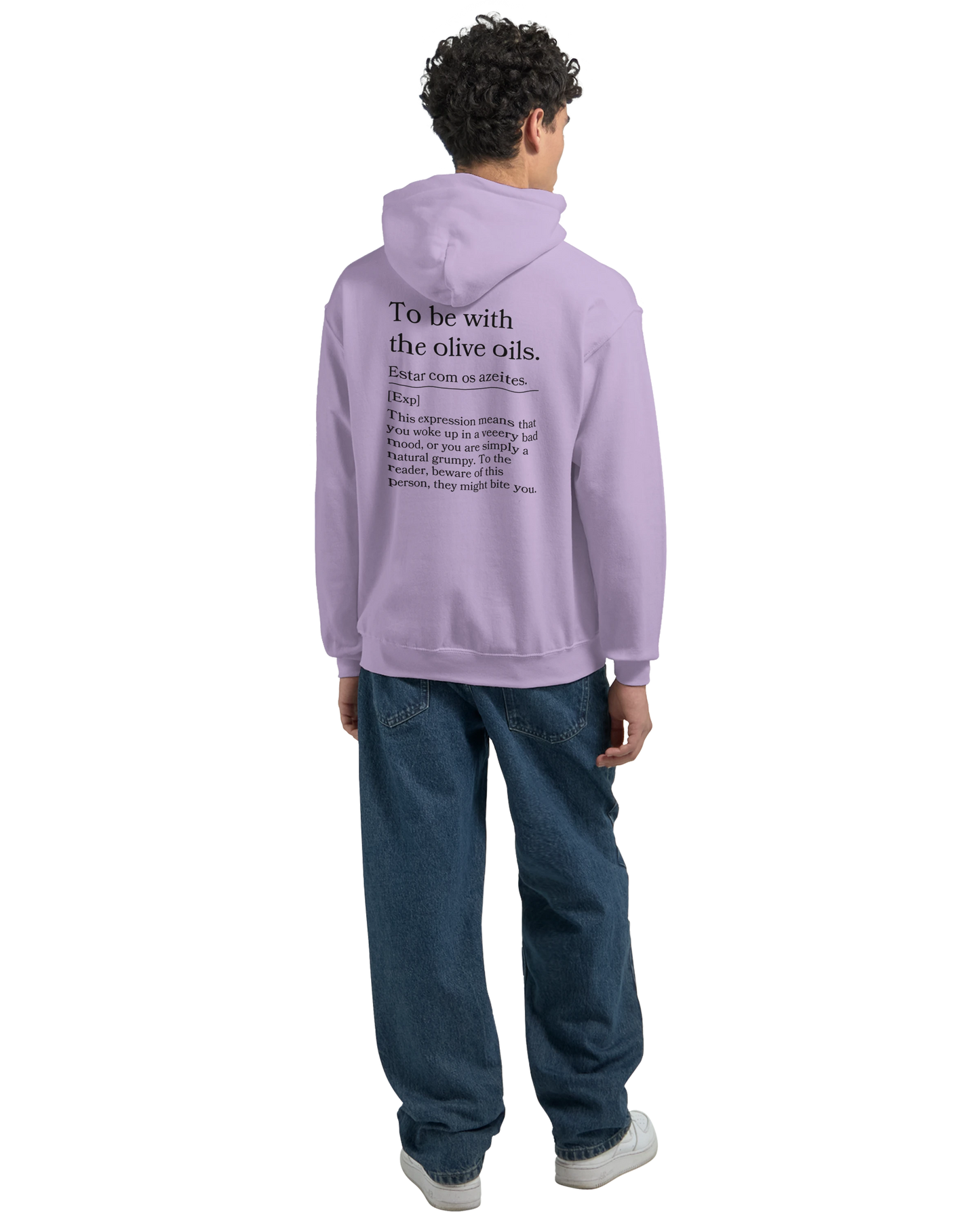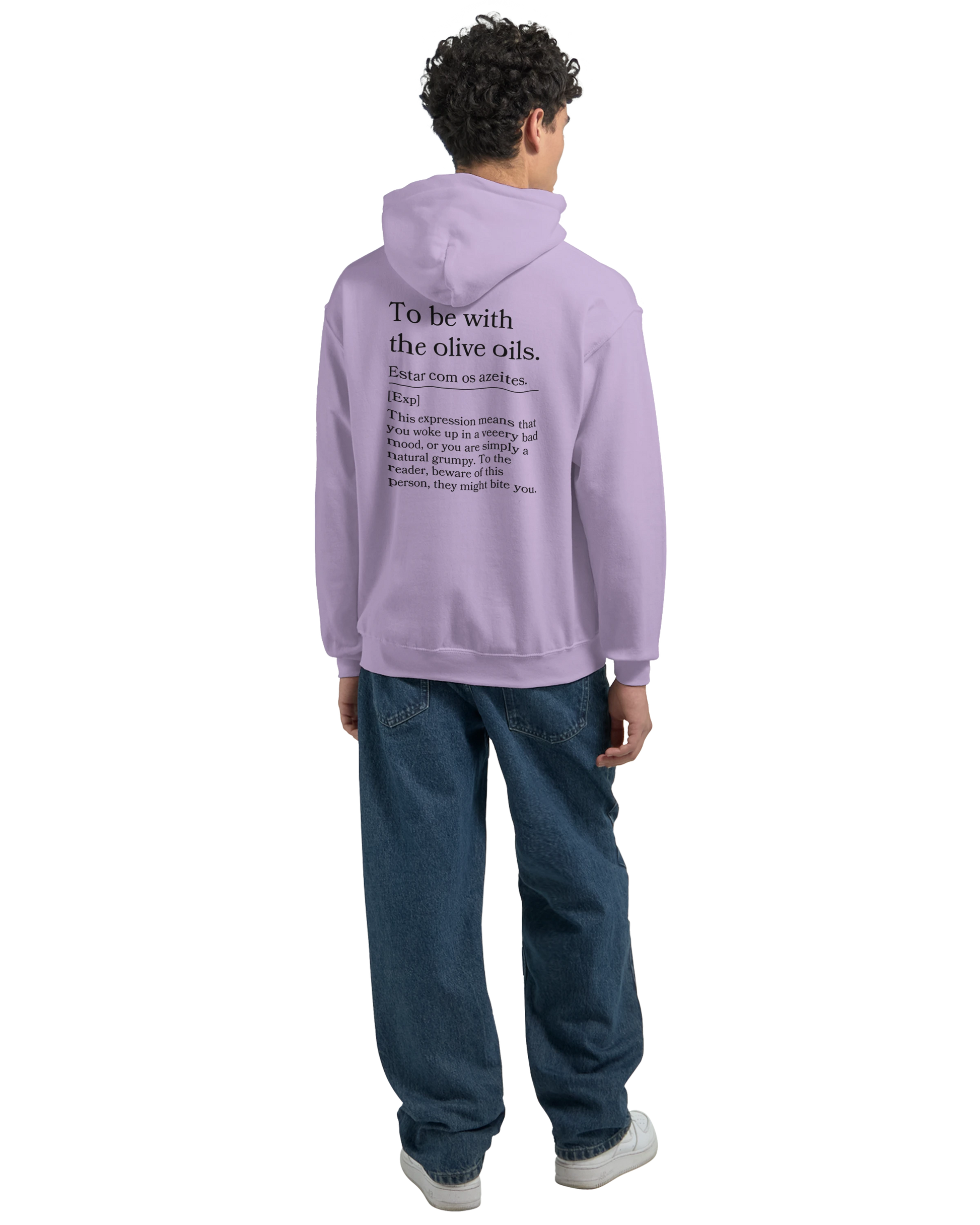 Feeling grumpy? This hoodie says it loud and proud: “Estar com os azeites.” Because waking up on the wrong side of the bed shouldn’t have to be quiet. With a cheeky dictionary-style back print, it warns everyone: avoid me until I’ve had coffee.